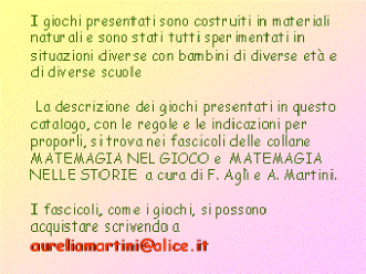 HOME CHI SONO GIOCHI E STORIE PERCORSI DI FORMAZIONE E AGGIORNAMENTO LABORATORI MOSTRE PUBBLICAZIONI CURRICOLO CONTATTI